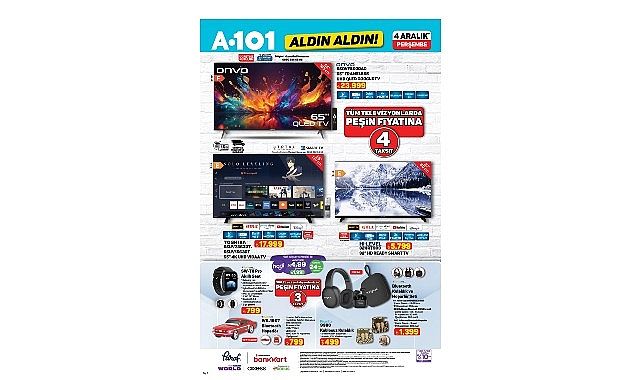 Türkiye'nin 81 ilinde ve tüm ilçelerinde 13.500'den fazla mağazasıyla faaliyet gösteren, 1.200'den fazla tedarikçisiyle perakende sektörünün öncü markalarından A101, 4 Aralık Perşembe günü teknoloji ürünlerini cazip fiyatlarla müşterileriyle buluşturacak.