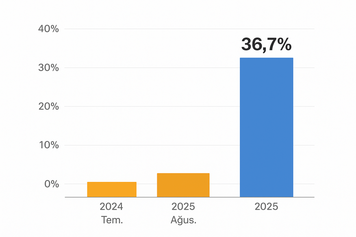 Yıllık karşılaştırmada, sanayi sektörü ciro endeksi %32,4, inşaat sektörü %53,2, ticaret sektörü %35,6 ve hizmet sektörü %40,6 oranında artış gösterdi.