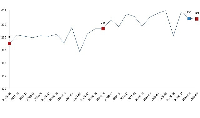 Bir önceki ay 229.965 ton olan tavuk eti üretimi, Eylül ayında %0,5 azalarak 228.846 tona geriledi.