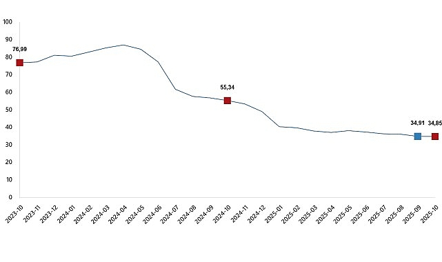 2025 Ekim ayında H-ÜFE, bir önceki aya göre %0,19 artarken, bir önceki yılın Aralık ayına göre %35,02, bir önceki yılın aynı ayına göre %34,85 ve on iki aylık ortalamalara göre %38,96 oranında artış kaydetti.
