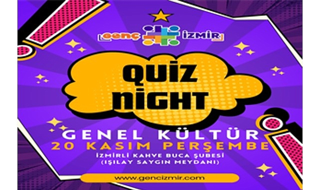 Türkiye Sağlıklı Kentler Birliği Başkanı ve İzmir Büyükşehir Belediye Başkanı Dr. Cemil Tugay’ın "genç dostu kent" vizyonu doğrultusunda faaliyet gösteren Kadın ve Aile Hizmetleri Dairesi Başkanlığı’na bağlı Gençlik Çalışmaları Şube Müdürlüğü’nün yürüttüğü Genç İzmir, gençlere yönelik eğlenceli ve geliştirici etkinliklerine bir yenisini ekliyor. Üniversiteye hazırlık ve yabancı dil kursları, konservatuvar hazırlık eğitimleri, kültür turları, atölyeler ve gençlik kampları gibi ücretsiz hizmetlerle gençlerin konforunu artıran Genç İzmir, quiz gecesi serisini "genel kültür" temasıyla başlatıyor.