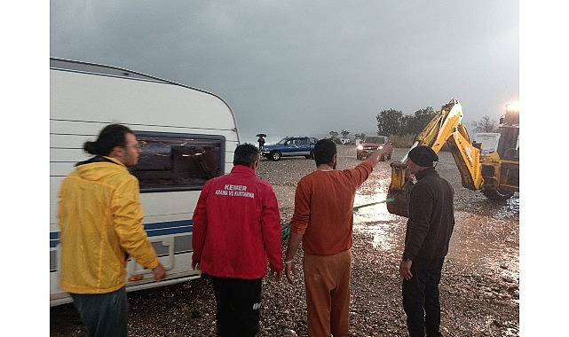 Kemer’de sabah saatlerinde başlayan ve öğle saatlerinde şiddetini artıran sağanak yağmur sırasında, Çamyuva sahilinde bulunan iki karavan denize sürüklendi. Karavanlardan birinde mahsur kalan Rus turistler, Kemer Belediyesi Afet İşleri Müdürlüğü ile Kemer Arama Kurtarma Derneği (KEMKUT) ekipleri tarafından kurtarıldı.