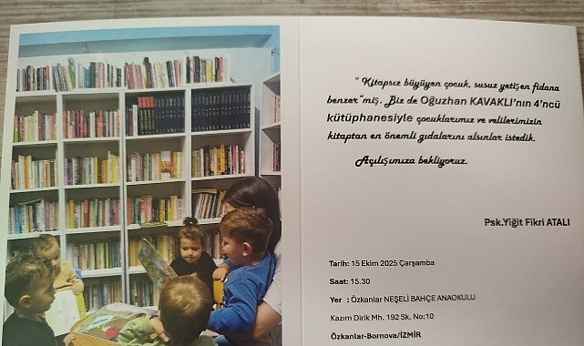 Gazetecilik alanında birçok nitelikli basın emekçisinin yetişmesine katkı sağlayan duayen gazeteci Oğuzhan Kavaklı’nın isminin verildiği kütüphanenin açılışı 15 Ekim Çarşamba günü saat 15.30’da Özkanlar Neşeli Bahçe Anaokulu’nda gerçekleştirilecek.