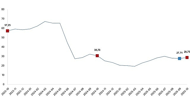 YD-ÜFE yıllık değişim oranı (%), Ekim 2025