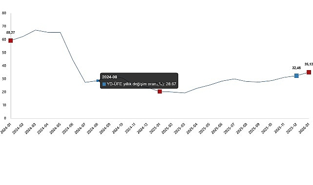 YD-ÜFE yıllık değişim oranı (%), Ocak 2026